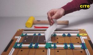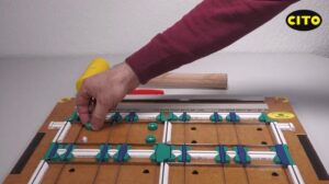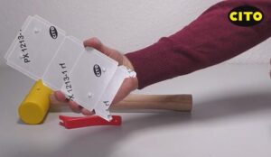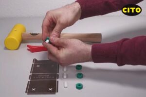 ポジショニングリング ポジショニングリングとは ヨーロッパでは、CAD面板の位置を実際の面盤に正確に転写する際に、 ポジショニングピンやポジショニングリングを使用するのが一般的です。 使い方 1. リングの穴へピンを差し込みます。 2. 1.をCAD面板の表面から差し込みます。 ピンはくぼみのあるヘッド部分から先に入れてください。 3. リングを軽く押さえます。 4. CAD面板へのセットは完了です。 5. CAD面板の表を下向きにして、 予め加工された抜型の穴へはめます。 6. CAD面板に傾きがないよう、 ウレタンハンマーで全体を軽くたたきます。 7.剥離紙をはがします。 8.面盤へ転写します。 9. 転写後、抜型からリングをはずします。 10.抜型からピンを外します。 別売りで補助ツール(画像内赤色)もございます。 オンラインショップでのご購入はこちら ONLINE SHOP