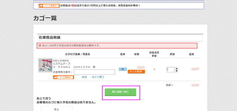 ③「ショッピングカート」から「購入」に進みます